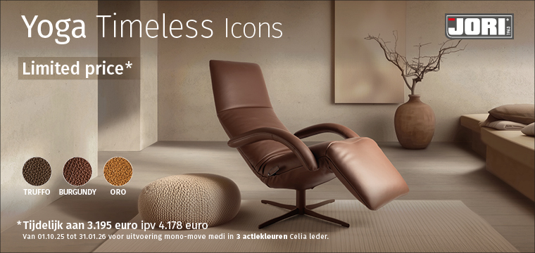 JORI zet dit najaar zijn meest geliefde iconen in het zonnetje: de Yoga en de Symphony. Beide modellen zijn uitgegroeid tot klassiekers die hun plaats in de designwereld dubbel en dik verdienen. Met een perfecte balans tussen esthetiek en comfort zijn ze nog steeds een inspiratiebron voor gerenommeerde designers wereldwijd.