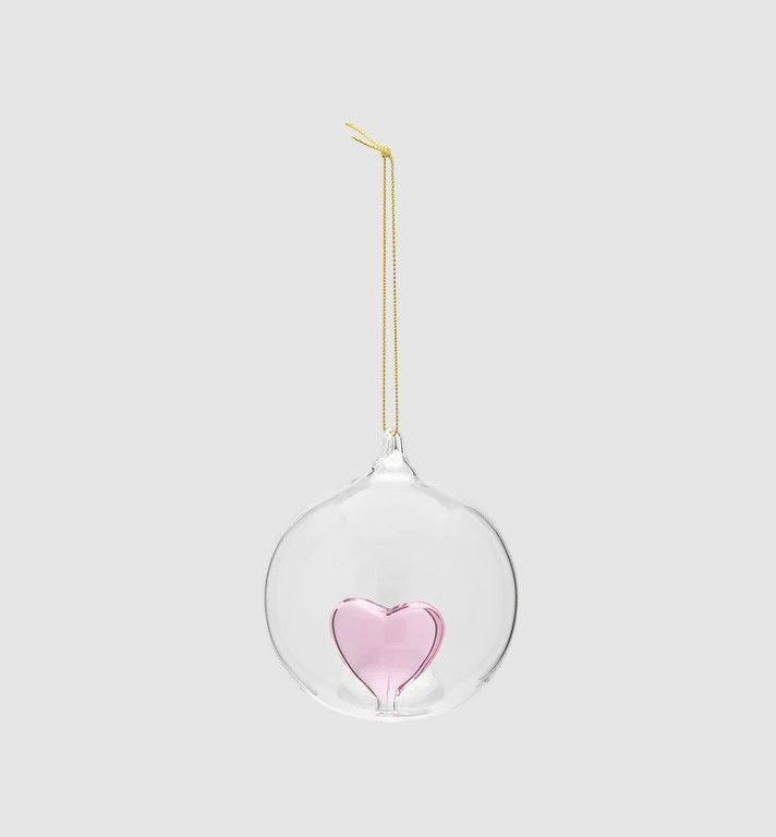 Een prachtige glazen kerstbal uit de feestcollectie van Anna + Nina, afgewerkt met een lichtroos hartje binnenin.
