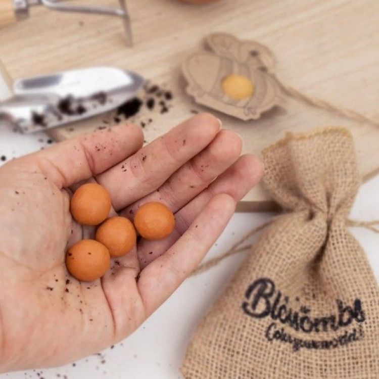 - Materialen: Biologische bloemzaden en natuurlijke klei, nutriënten en kleurpigmenten