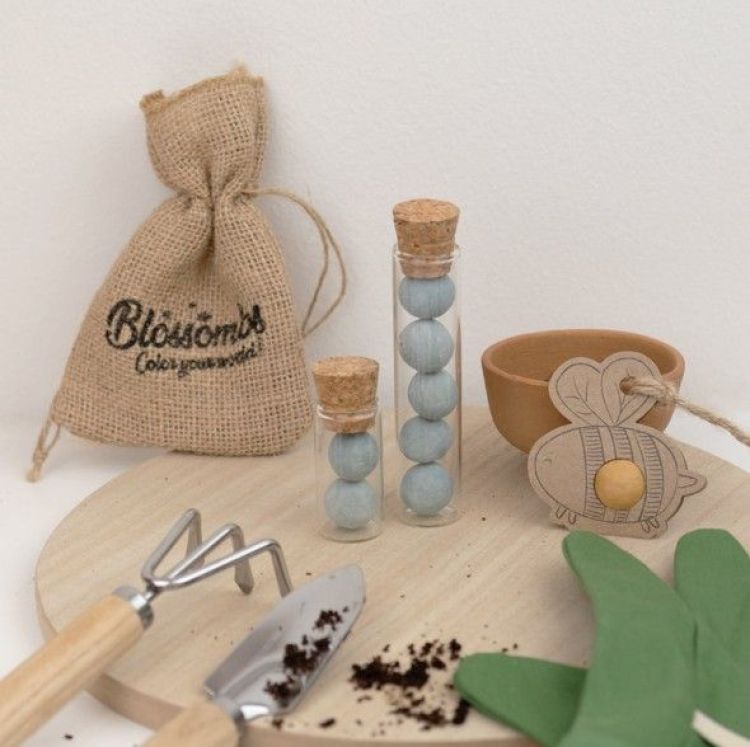 Strooi de blossombs in je tuin, in een bloemenperkje of in een leuke bloempot en geef ze wat water ( bij gebrek aan regen ).