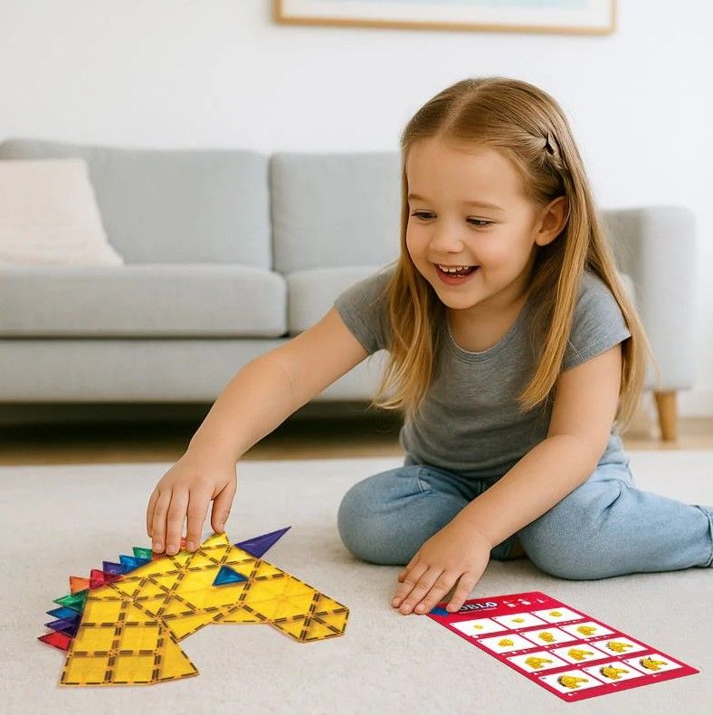 De magnetische tegels klikken makkelijk op elkaar en laten de mooiste kastelen, voertuigen etc. tot leven komen ... heb je even geen ideeën meer dan komt het bijgeleverde inspiratieboekje van pas!