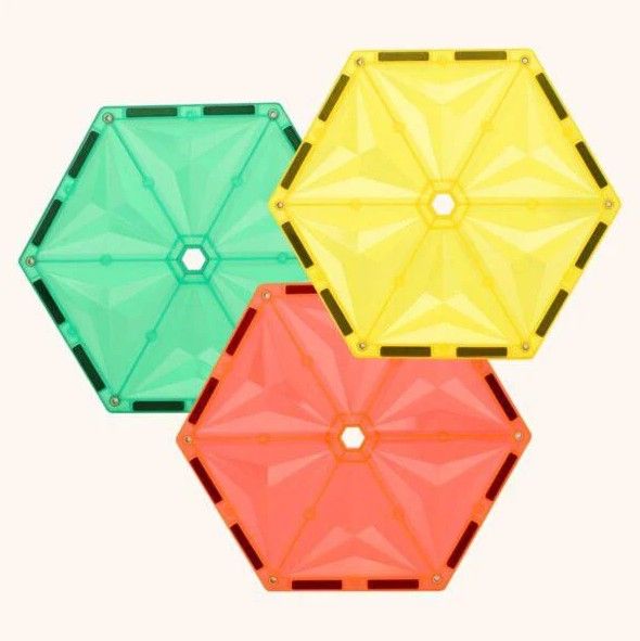 - Inhoud: 6 hexagon vormige onderdelen (2x geel, 2x rood, 2x groen)