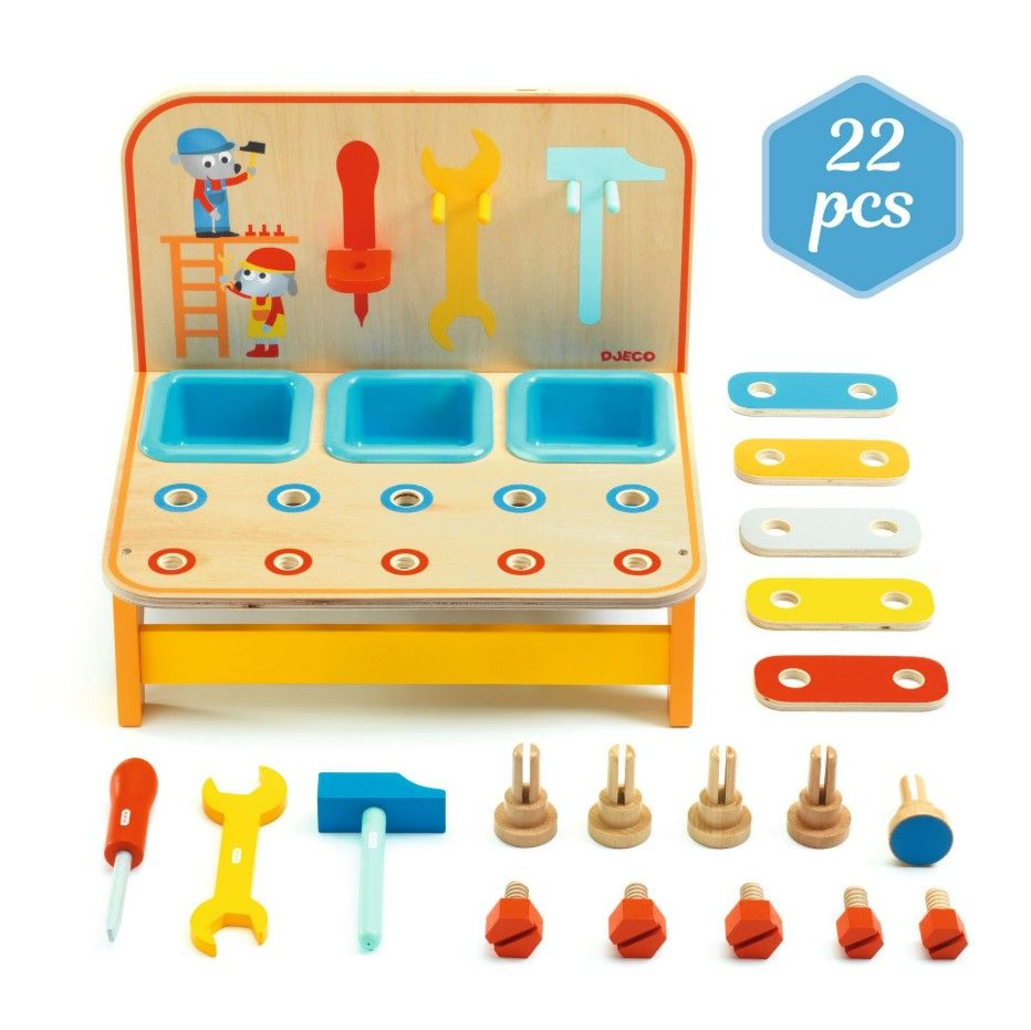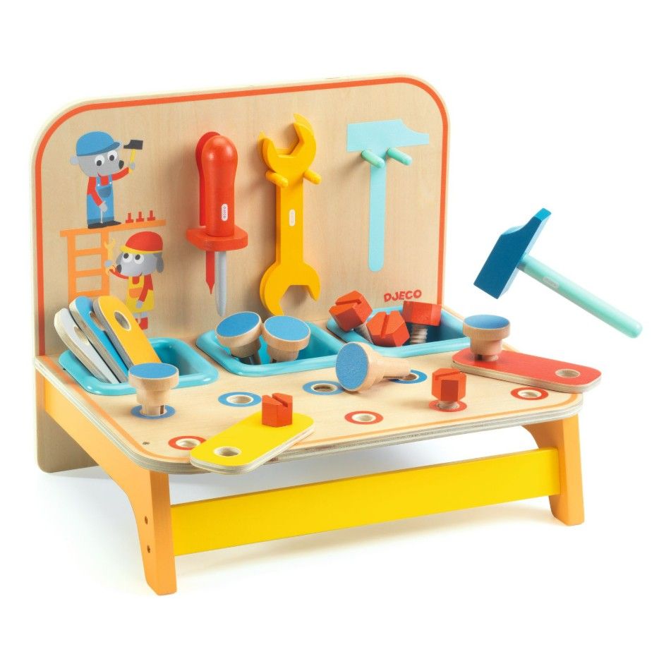 Met deze houten werkbank van Djeco beleef je uren sleutelplezier.