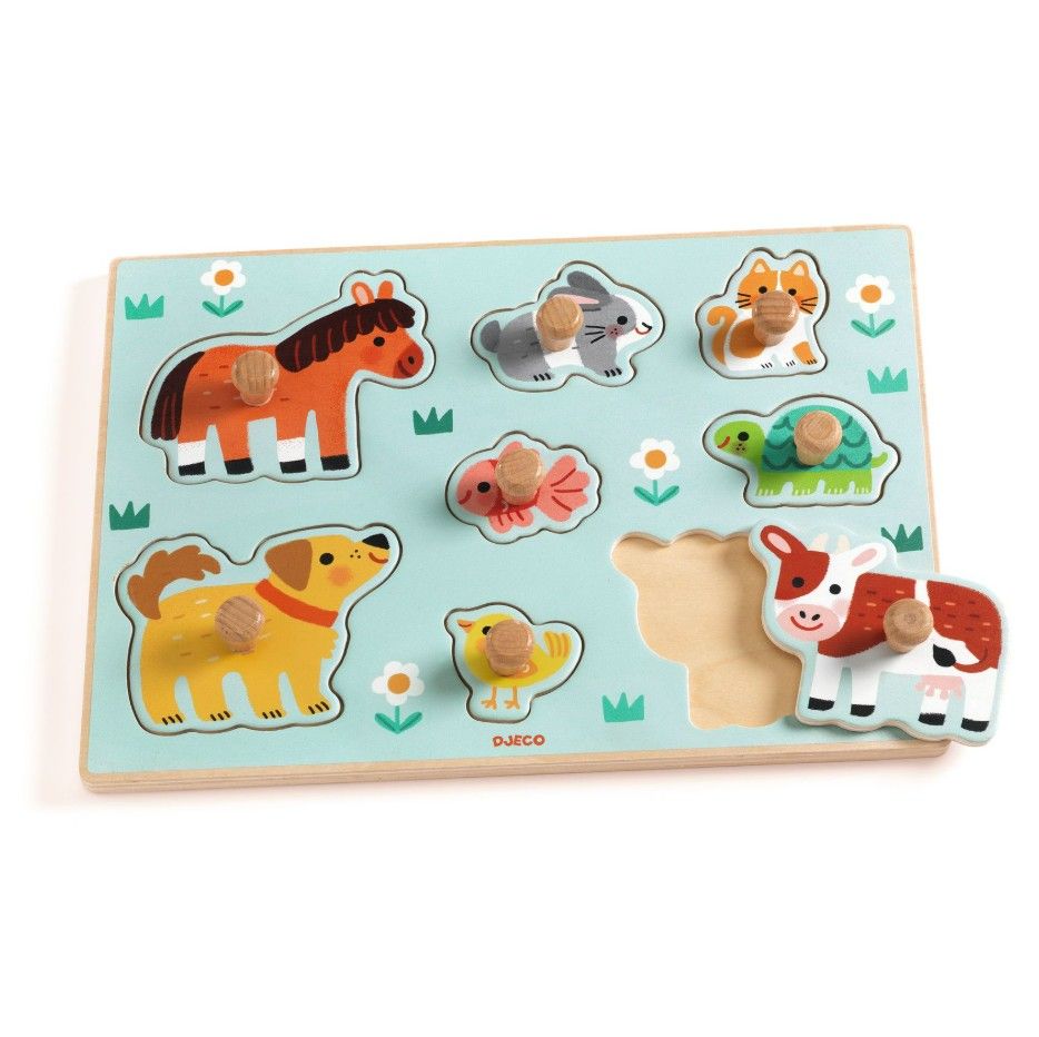 Deze puzzel gemaakt met dierenmotief is superleuk. Met de handige handvatjes kunnen kinderen de stukken ook goed vastnemen.