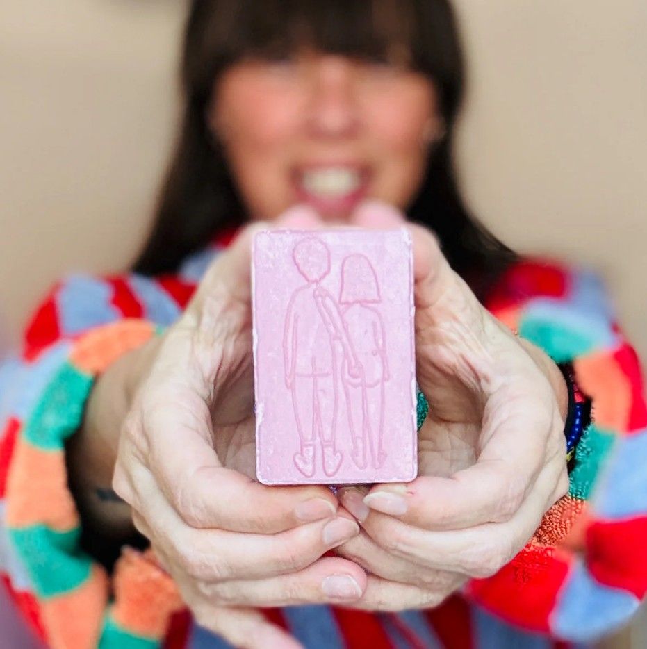 Heerlijke zeep ven Helen B met het mooie design van naked couple (back).