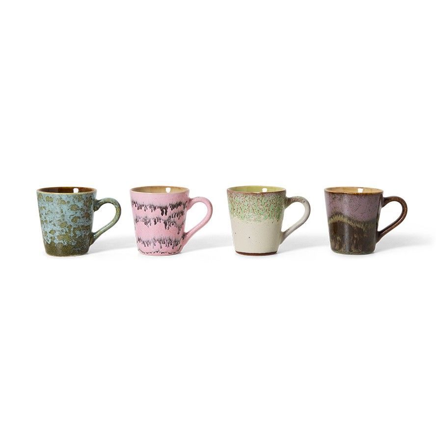 Een set van 4 espresso mokken in diverse kleuren uit de HK Living collectie.