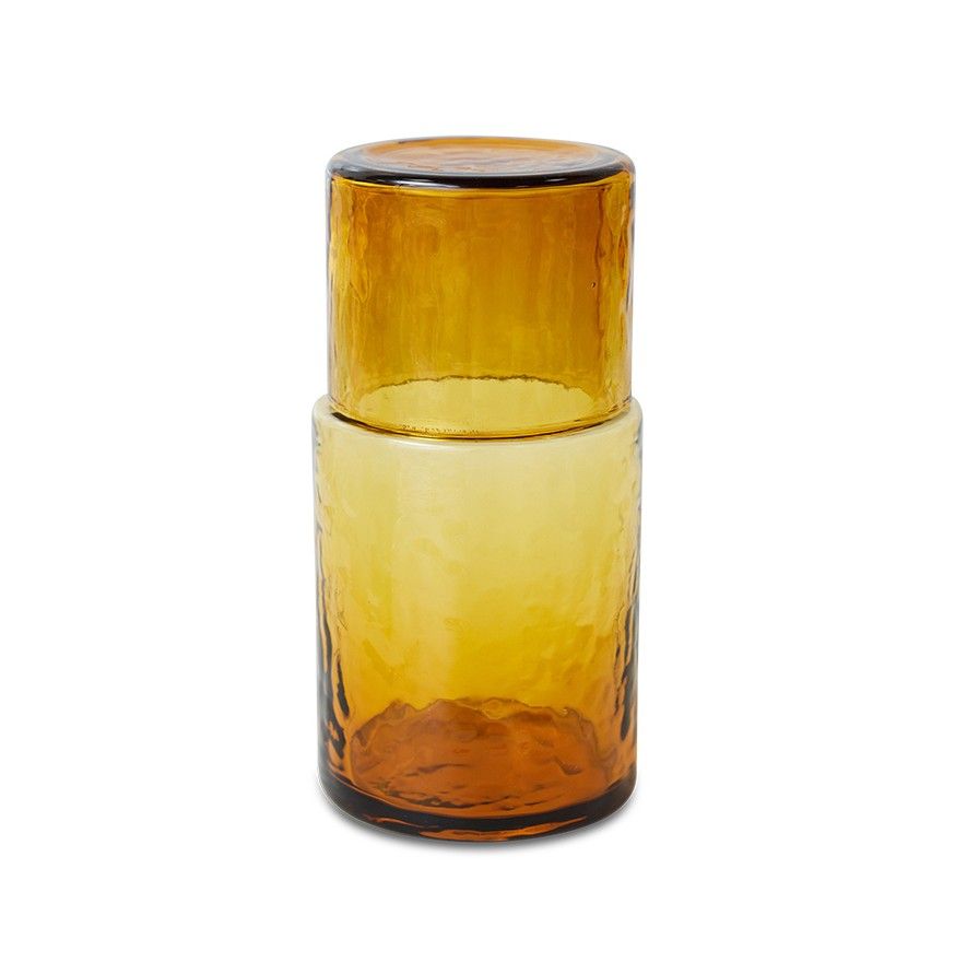 Een stijlvolle glazen karaf in een mooie kleur, ideaal voor het serveren van je favoriete drankjes.