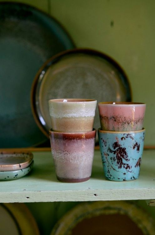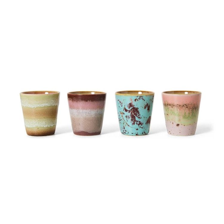 Een set van 4 kleurrijke ristretto mokken in diverse kleuren uit de 70's collectie.
