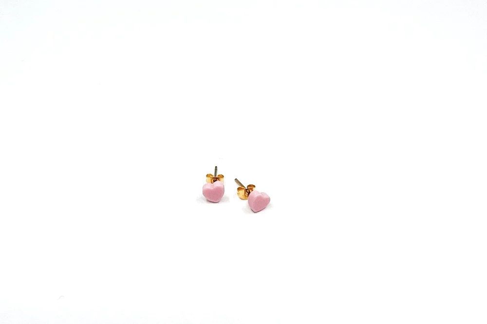 - Een schattige set van 2 snoeproze hartjes oorknopjes.