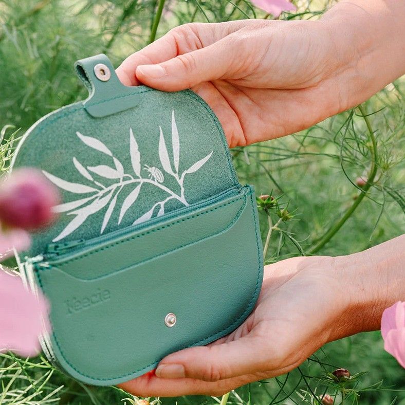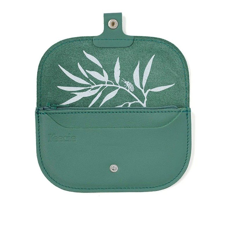 Deze kleine dames portemonnee heeft aan de binnenzijde een print van een olijftak met een kevertje afgebeeld
