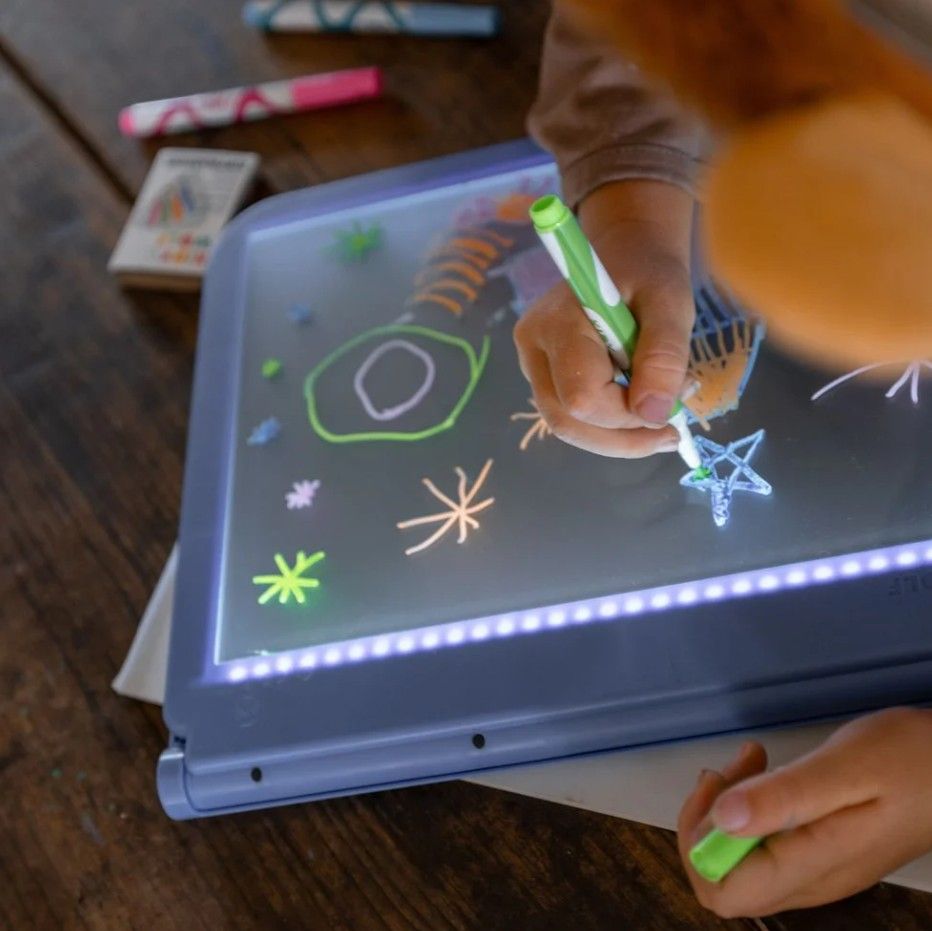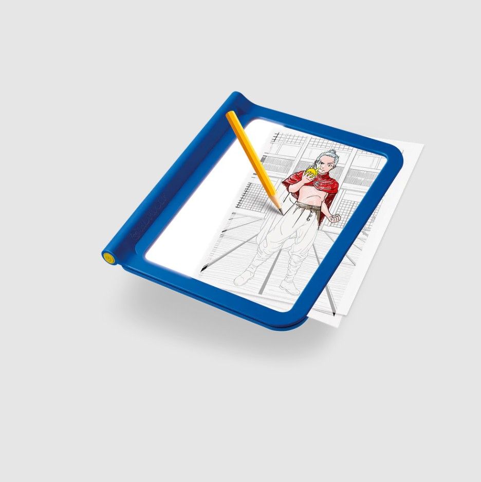 Kidydraw is een draagbare tekentafel, met aan de ene zijde een lichttablet om je coolste manga figuren mee te tekenen. En aan de ander kant een tekenbord in zwarte plexi met een Glow-in-the-dark effect.