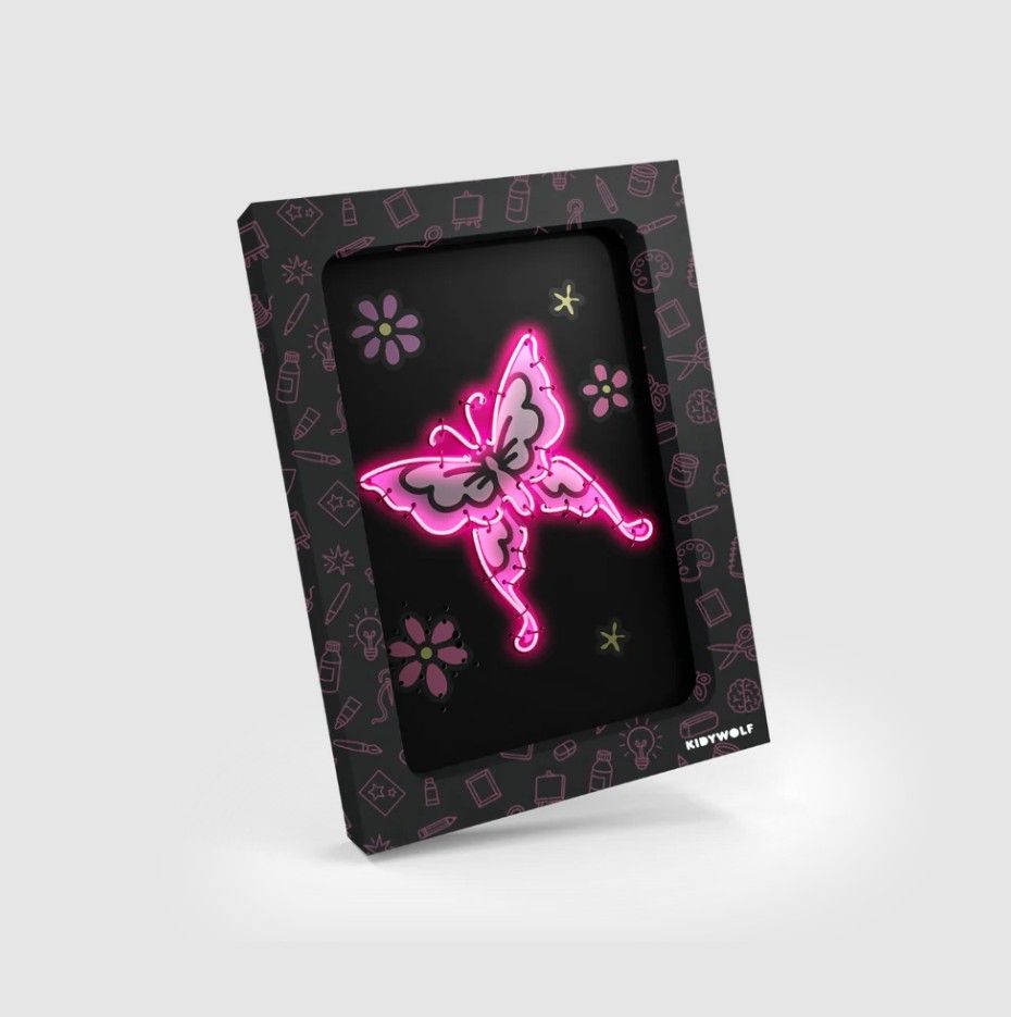 Leuke muurdecoratie die je kan personaliseren door de panelen in te kleuren en door middel van de neondraad.