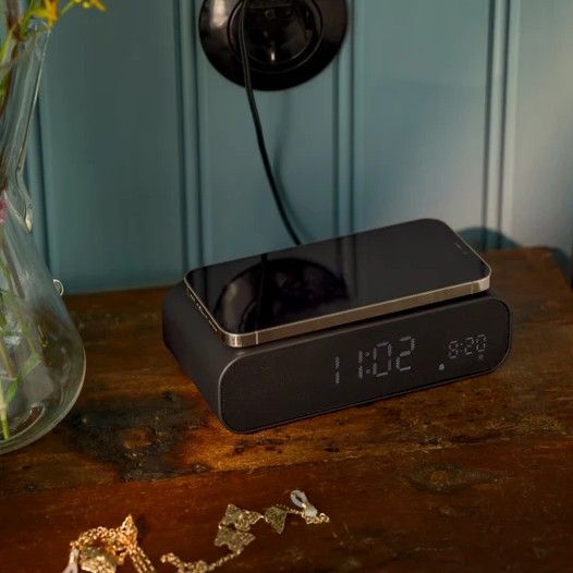 De Wakie is ook uitgerust met een oplaadfunctie voor de telefoon, plaats hem erboven op en heb een opgeladen telefoon in de ochtend.