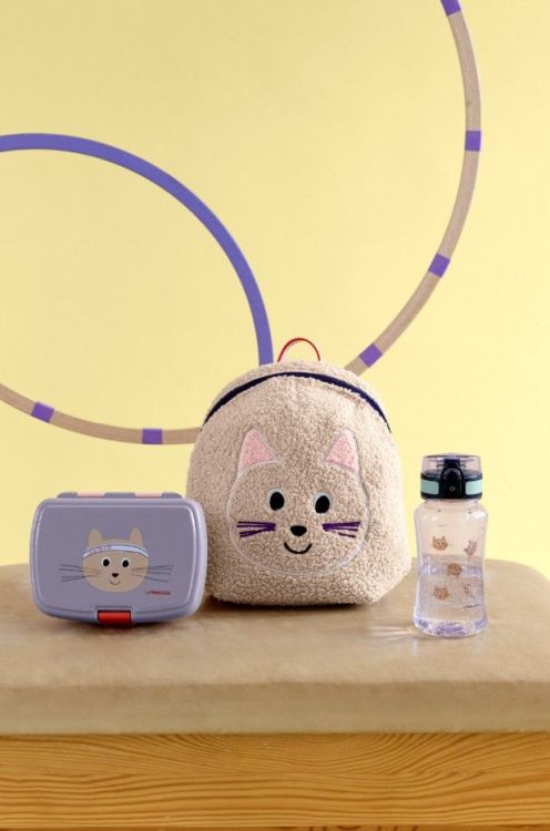 Een leuke drinkfles uit de "Tiny team cat" collectie van Lässig, afgewerkt met een zwarte dop.