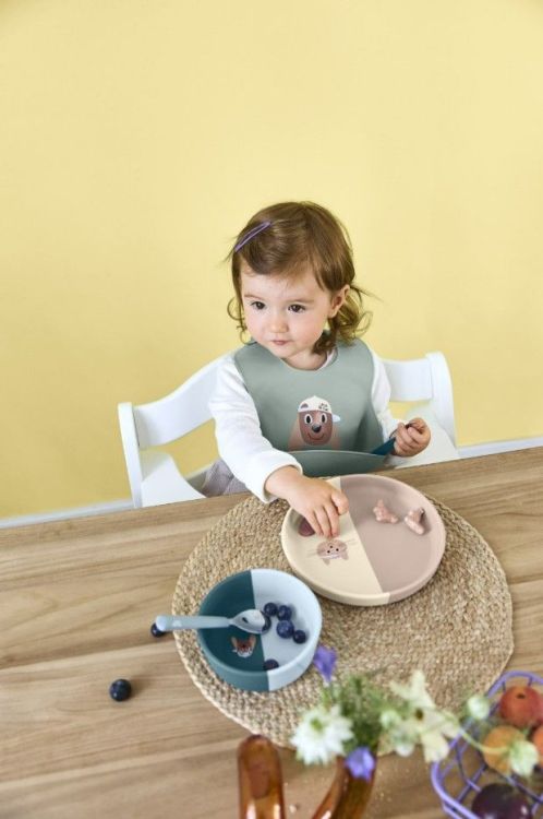 Een handig bord voorzien van leuke kleurtjes en een ondeugend katje, er is ook een assorti Tiny Team kommetje van te verkrijgen.