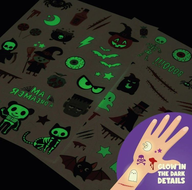 Super leuke kindertattoos in een Halloween thema. En de zijn ook nog eens glow in the dark!
