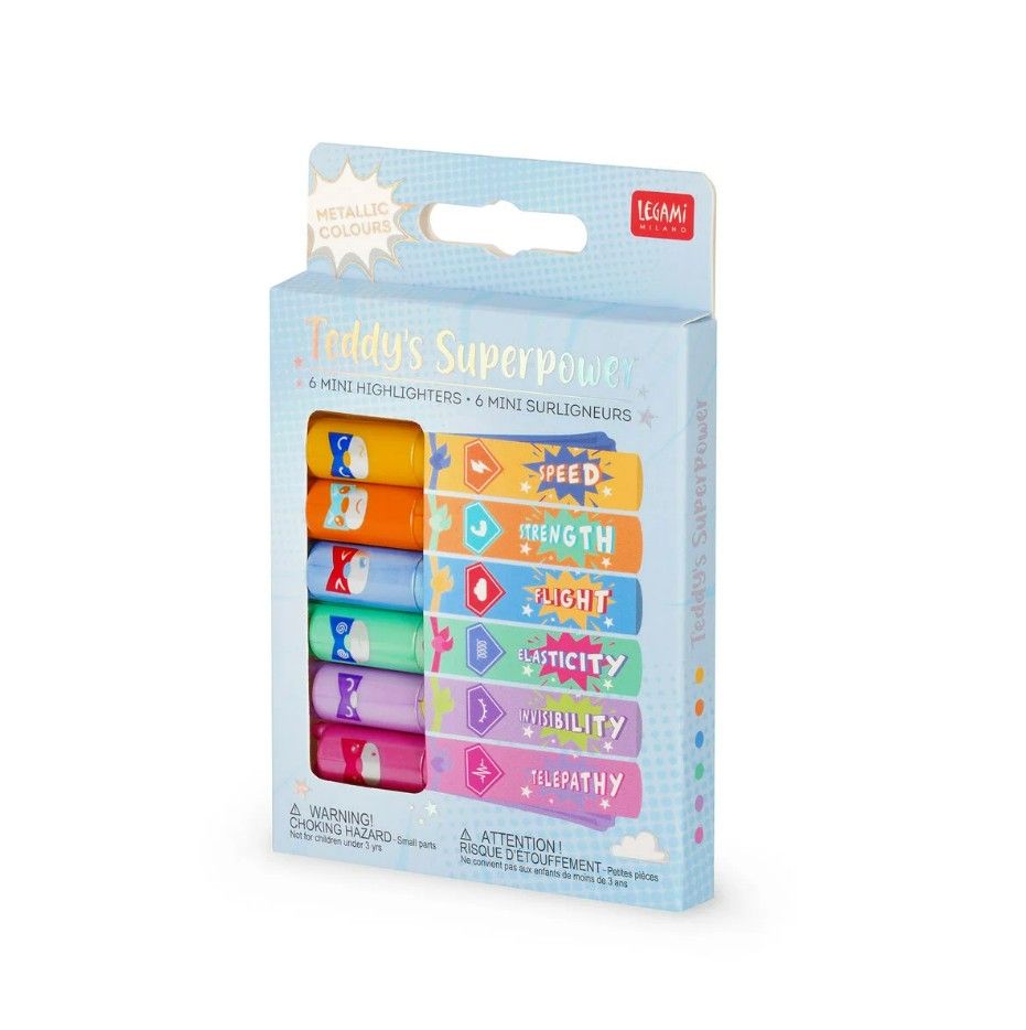 Teddy's Superpower - 6 mini markeerstiften - Metallic
