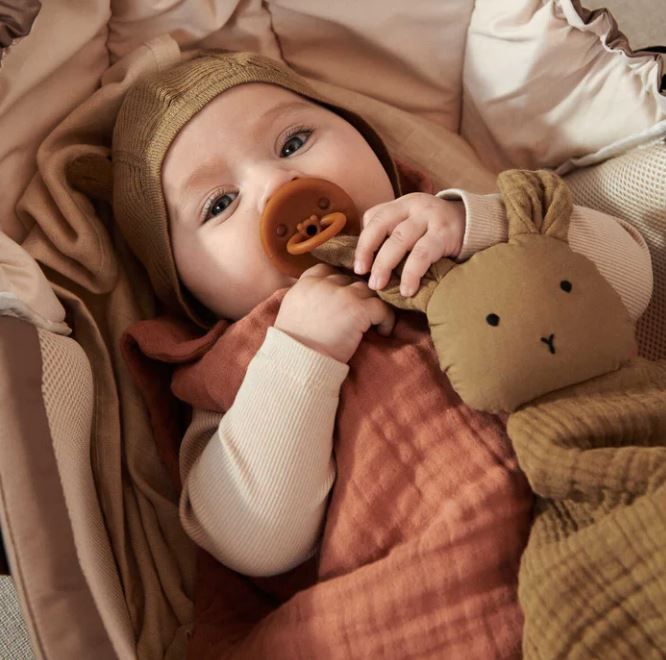Addison het knuffeldoekje van Liewood, afgewerkt met konijnenoortjes en een schattig snoetje.