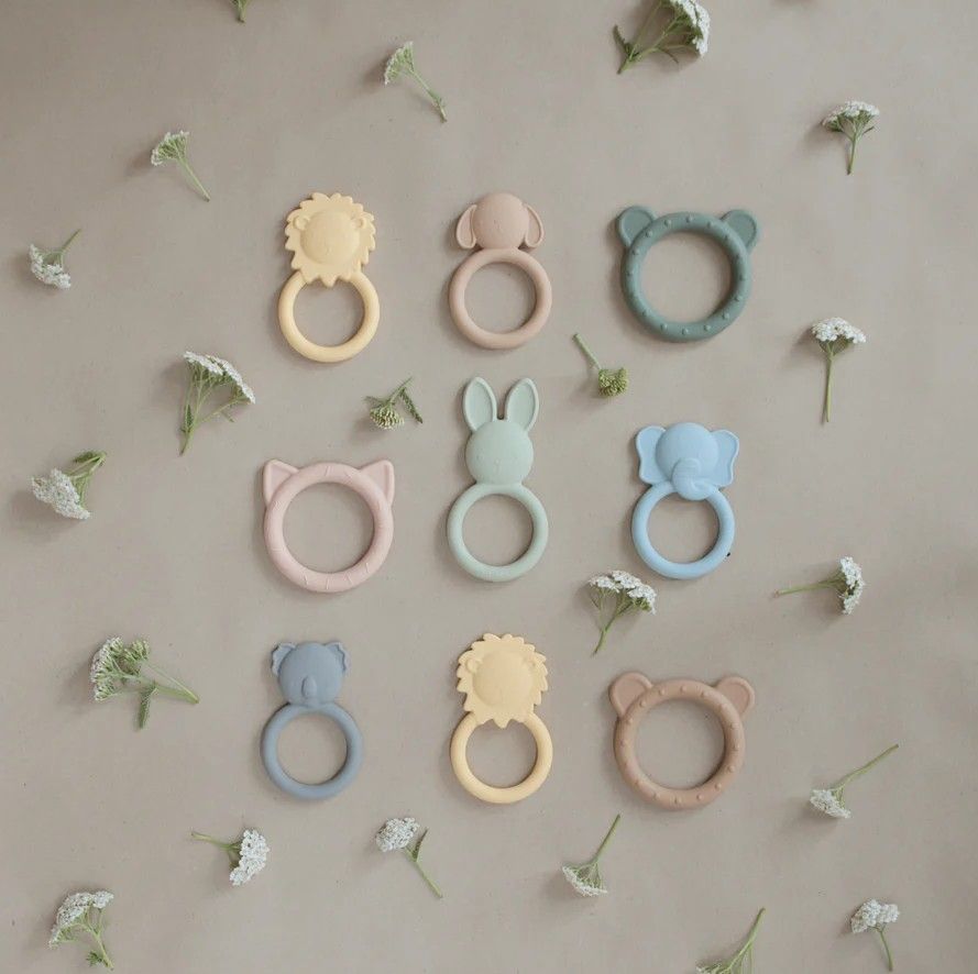 De siliconen bijtring help bij pijnlijk tandvlees en doorkomende tandjes, gemaakt om gemakkelijk vast te nemen en veilig in gebruik.