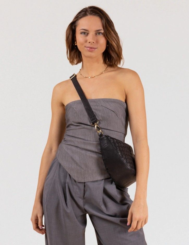 Leo, de geweven schoudertas in soepel leder van het Nederlandse merk O MY BAG. Een elegante handtas met een verfijnde look.