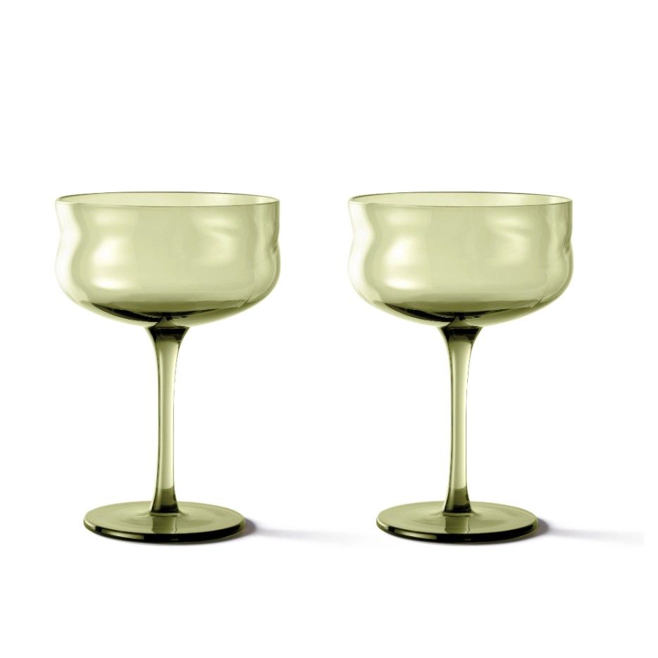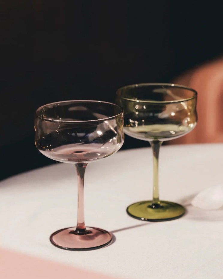 De Swirl Champagne coupen van Paveau, elegante glazen die comfortabel in de hand liggen.