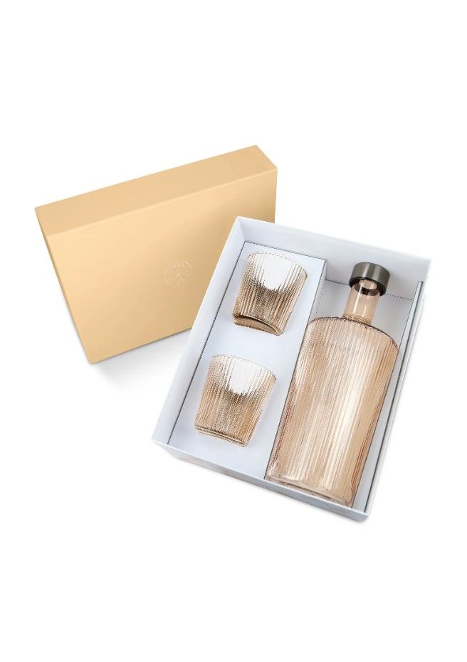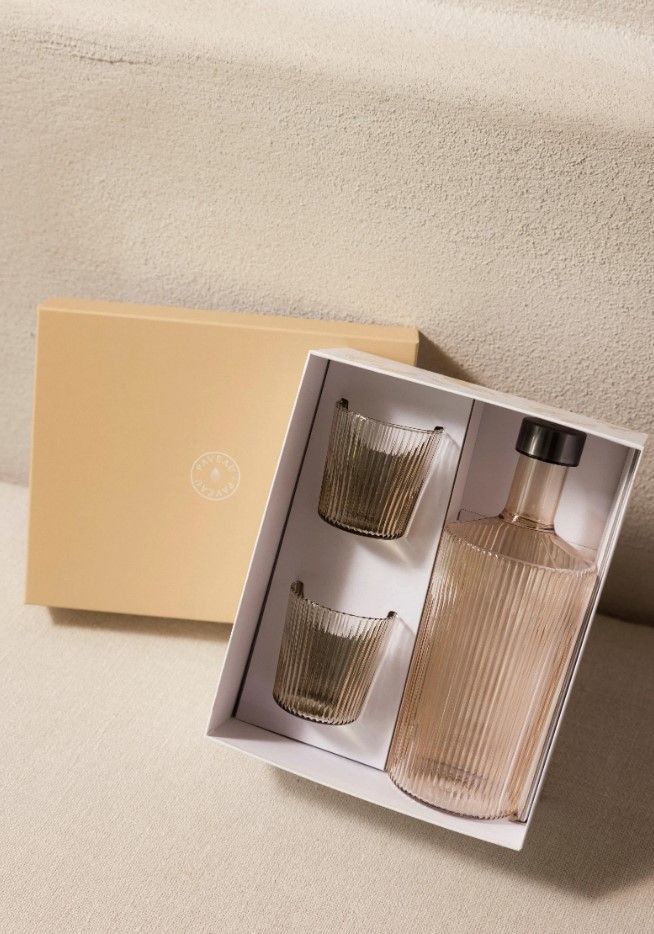 Breng extra kleur in huis met deze mooie set van Paveau met een fles en twee glazen in dezelfde kleur.