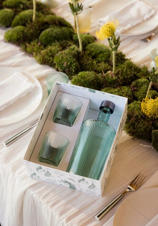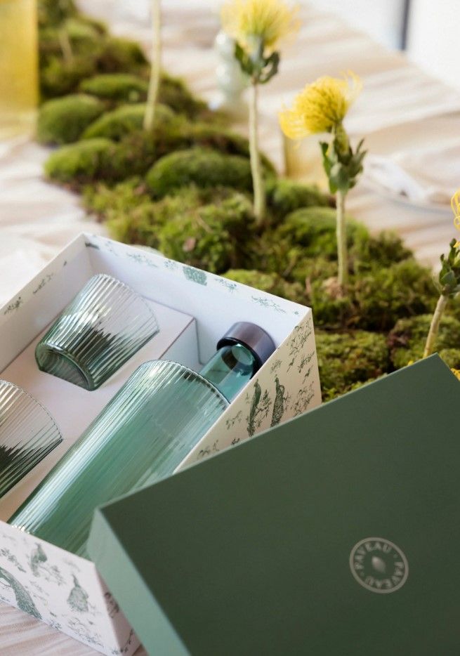 Breng extra kleur in huis met deze mooie set van Paveau met een fles en twee glazen in dezelfde kleur.