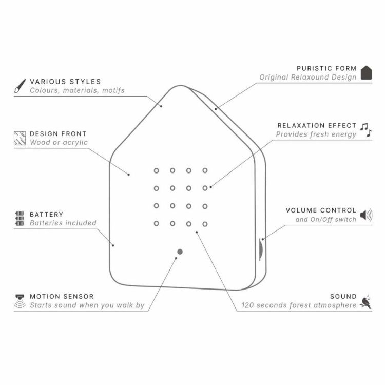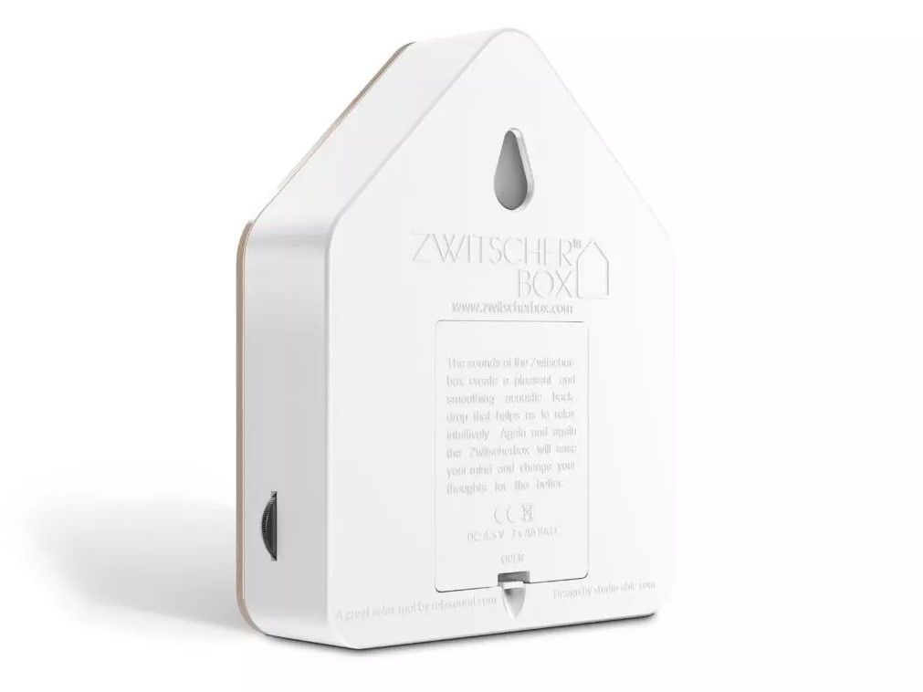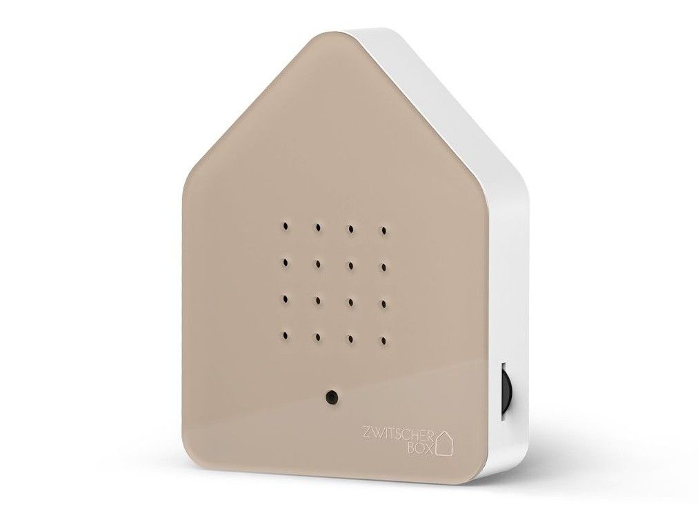 De Zwitscherbox is een decoratief item dat reageert op beweging, van zodra er iets van verandering is volgt er een rustgevend vogelconcert.