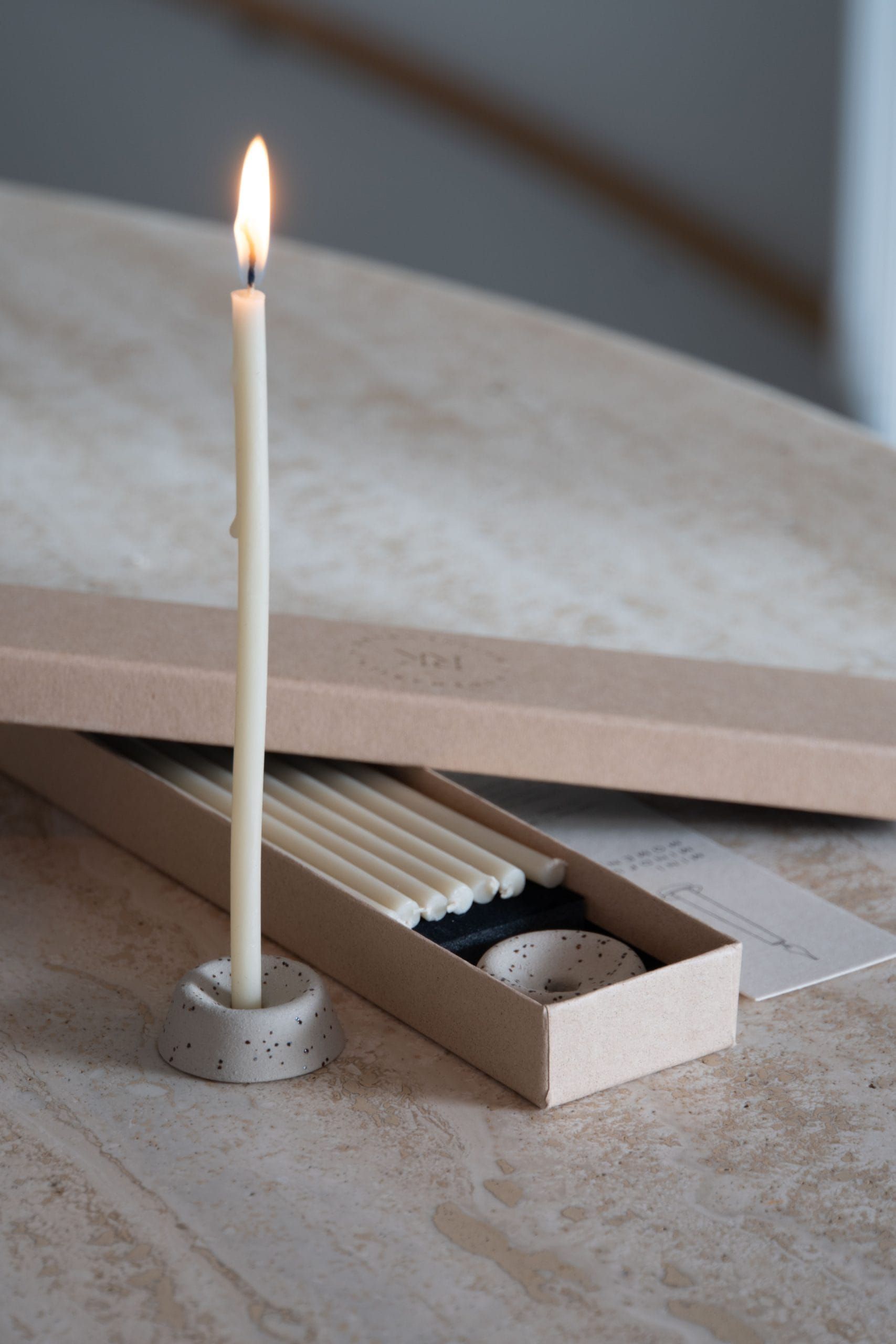 - Materialen: Handgemaakte kaarsenhouder / Bijenwaskaarsjes met katoenen lont