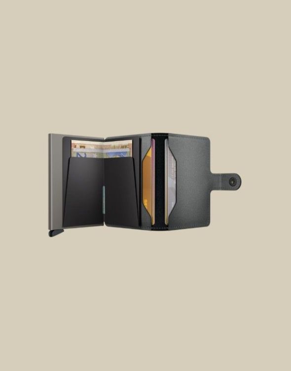 Het gepatenteerde mechanisme geeft met één simpele beweging toegang tot je kaarten: klaar voor gebruik. De aluminium behuizing beschermt kaarten tegen buigen, breken en ongewenste draadloze communicatie.
