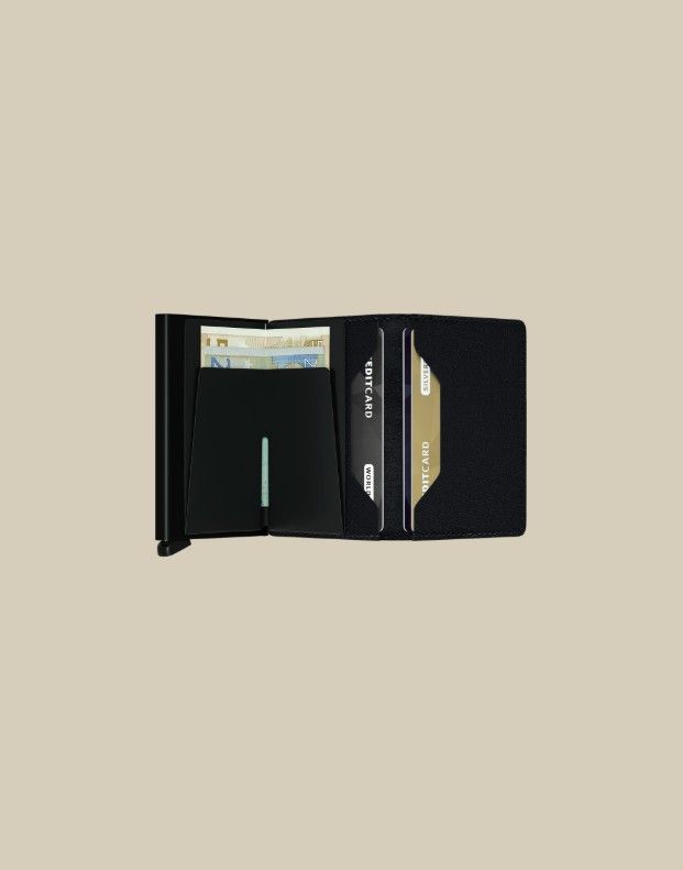 Het gepatenteerde mechanisme geeft met één simpele beweging toegang tot je kaarten: klaar voor gebruik. De aluminium behuizing beschermt kaarten tegen buigen, breken en ongewenste draadloze communicatie.