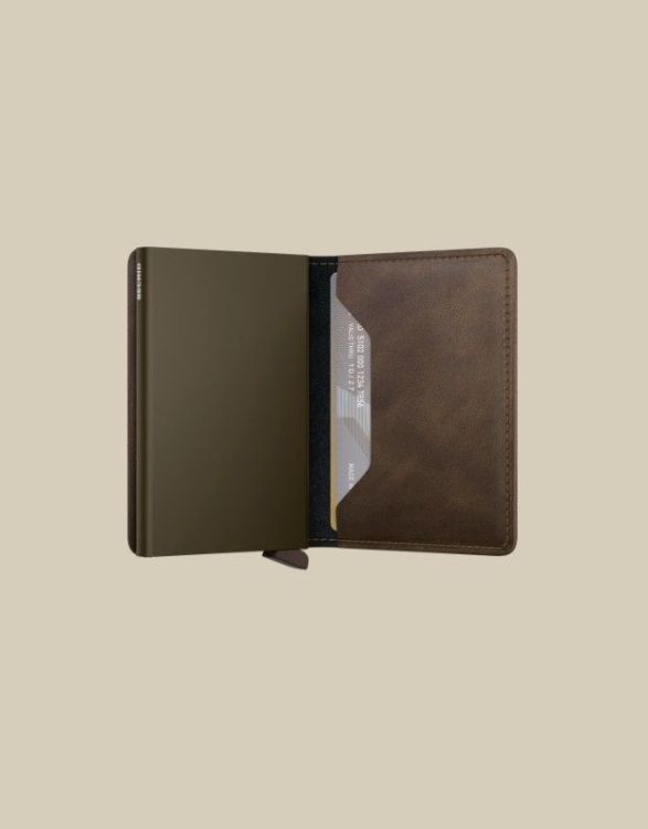 De slimwallet vintage in vervaardigd uit gecorrigeerd leder, gemaakt in Nederland. Ons vintage leer heeft een licht geschuurd oppervlak en een hoog wasgehalte dat het voorziet van een stonewashed look.