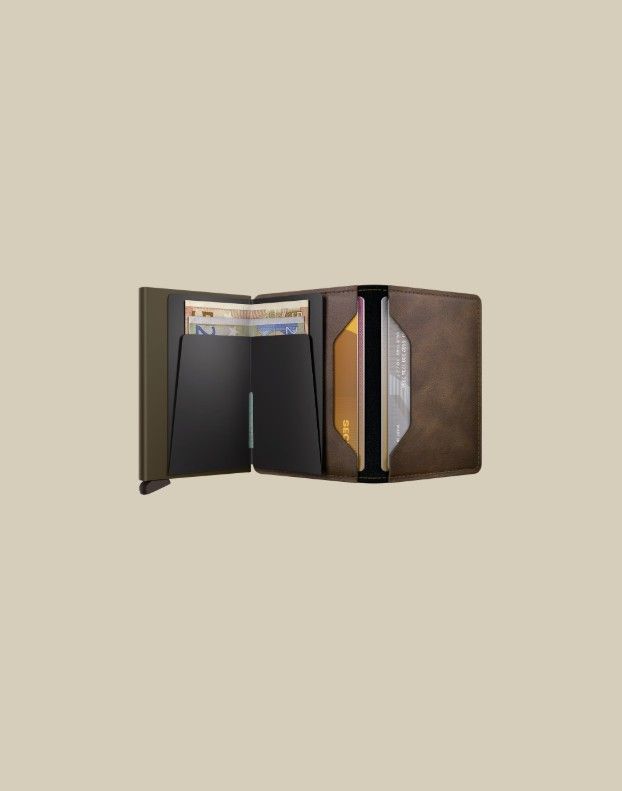 De Slimwallet is een eigentijdse kijk op de klassieke billfold. Door het slanke profiel past hij perfect in elke binnen- of broekzak. Het ruim gesneden leer biedt ruimte voor ten minste 6 extra kaarten en bankbiljetten.