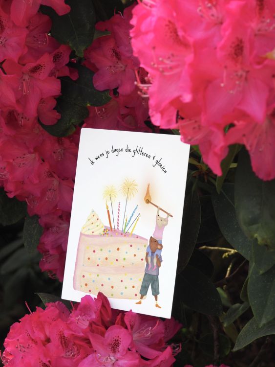 Op de achterzijde van de kaart vind je een kleine illustratie terug met een knipoog naar de voorzijde.