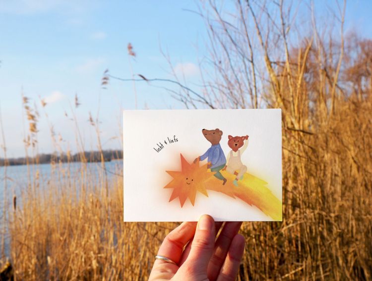 Op de achterzijde van de kaart vind je een kleine illustratie terug met een knipoog naar de voorzijde.