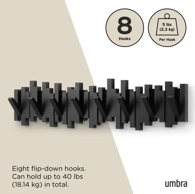 Leuke grappige kapstok met 8 haken van Umbra waarvan je de haken kunt inklappen.