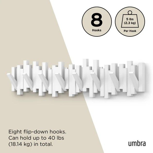 Leuke grappige kapstok met 8 haken van Umbra waarvan je de haken kunt inklappen.