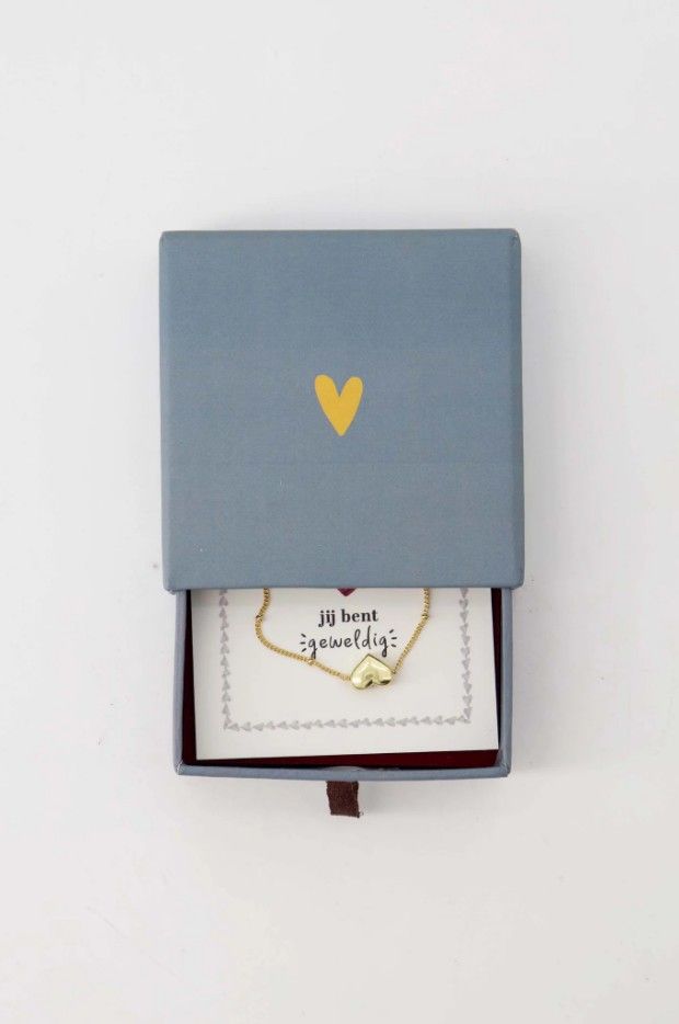 Armband hartje in schuifdoosje - leukerd - grijsblauw