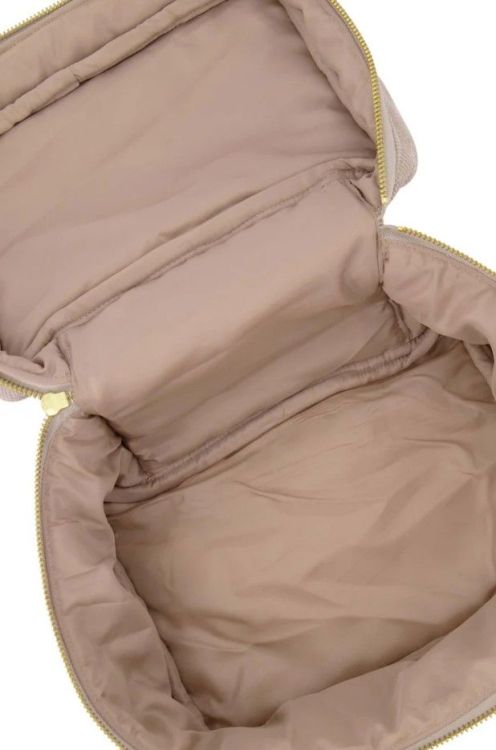 De stijlvolle toiletzak is voorzien van een ruim vak.