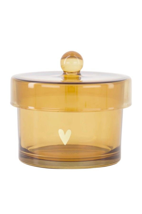 Een leuke bewaarpot van Zusss in de vorm van een doorzichtig potje met deksel, afgewerkt met een gouden hartje.