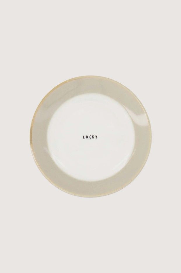 Gebaksbordje van de Zusss collectie met opschrift 'Lucky'.