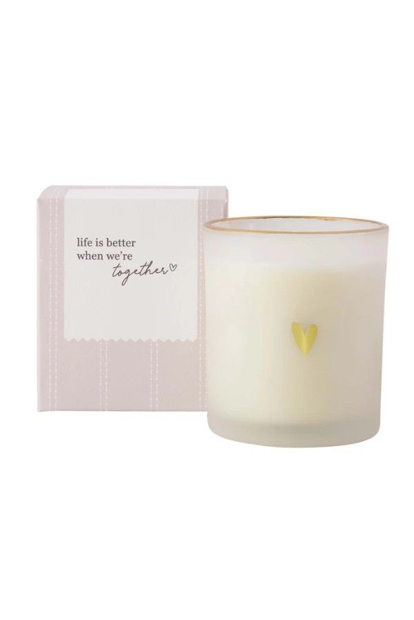 De kaars wordt geleverd in een doosje met het opchrift: "Life is better when we're together". Leuk voor jezelf of als cadeautje.