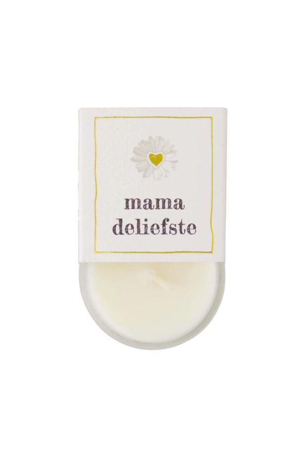 Geurkaarsje in wikkel - Mama de liefste - wit/zwart/geel