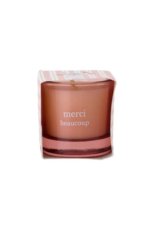 Geurkaarsje in wikkel - Merci beaucoup - Lichtroze / wit