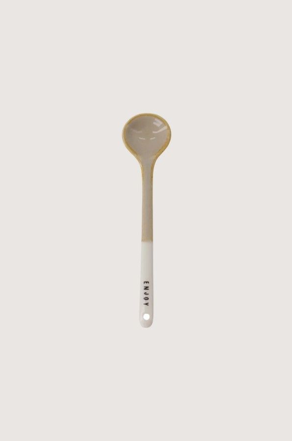 Keramiek lepeltje Enjoy - wit/zand