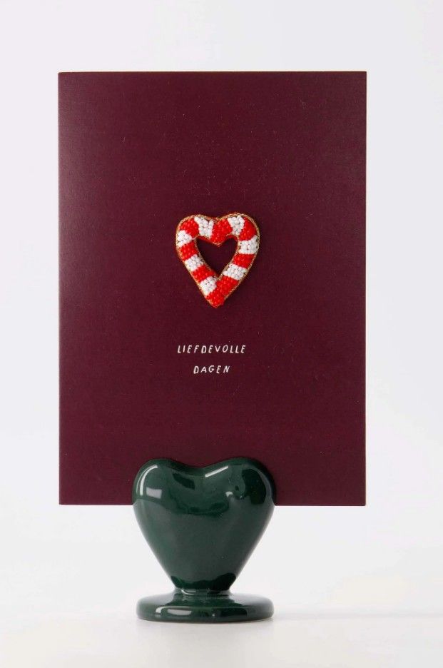 Klein kaartenstandaard keramiek - hartje - donkergroen