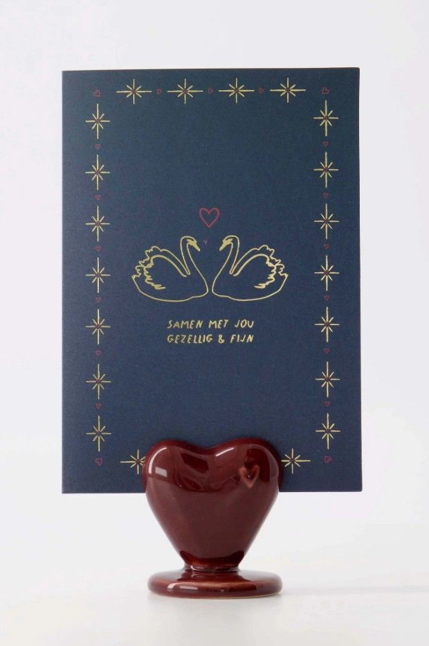 Klein kaartenstandaard keramiek - hartje - donkerrood