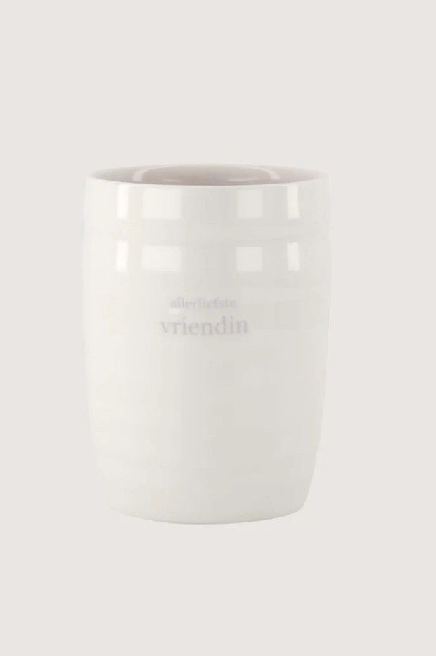 Het mokje is gemaakt van aardewerk en is voorzien van lila tekst: 'allerliefste vriendin'.