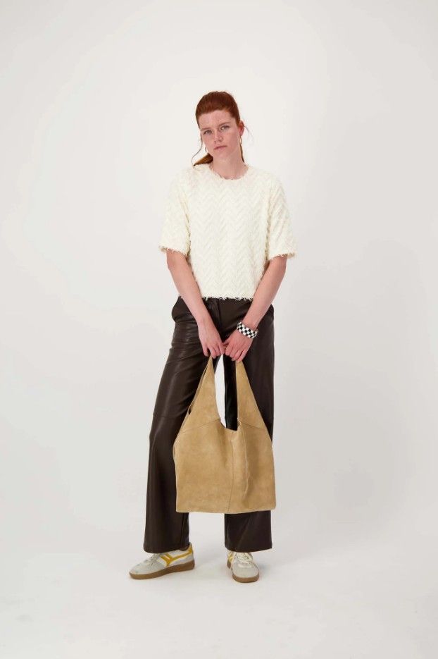 Duurzame schoudertas van Zusss in een zachte beige kleur.