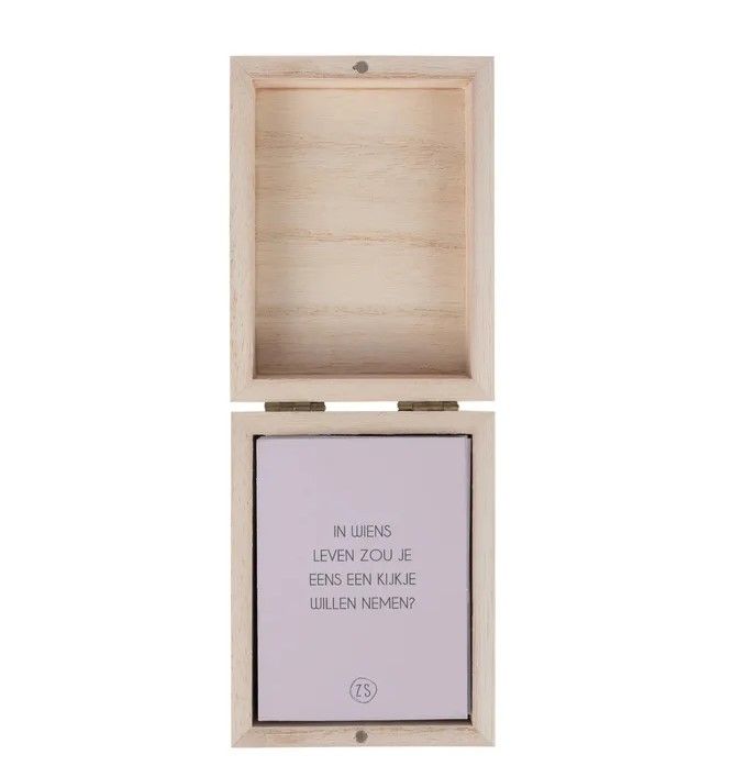 Dit leuke houten doosje bevat allerlei vragen maar ook "this or that's zoals; zoet of zuur?